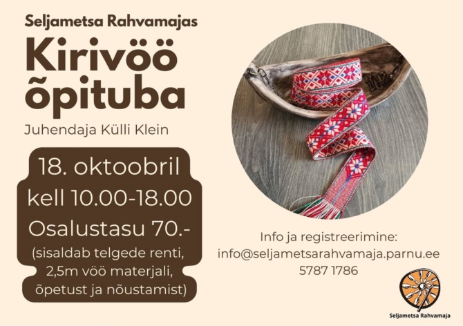 Oled oodatud õppima traditsioonilist kirivöö kudumist. Õpituba juhendab Külli Klein.