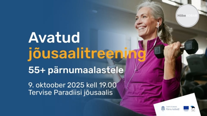 9.oktoobril 2025 kell 19.00 toimub Tervise Paradiisi jõusaalis (Side 14, Pärnu) tasuta avatud jõusaalitreening, kuhu on oodatud kõik 55+ huvilised.