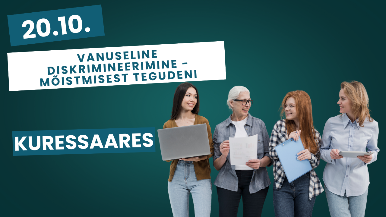 Kuressaare Rahvaülikool koostöös Tallinna Ülikooli Haapsalu kolledžiga kutsub praktilisse töötuppa „Vanuseline diskrimineerimine – mõistmisest tegudeni”, et aidata luua toetav ja kaasav töökeskkond igas eas töötajatele.