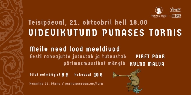 Õhtu meeleolu loob pärimusmuusik ja helilooja Kulno Malva, kes mängib karmoškat, akordioni, torupilli ja vilesid. Tema looming liigub pärimuse ja kaasaegse muusika piiril, tuues igasse esitlusse värske ja omanäolise kõla.