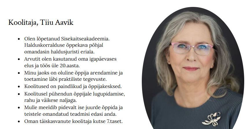Koolitaja Tiiu Aavik. Lisainfo: https://tiiuaavik.weebly.com/