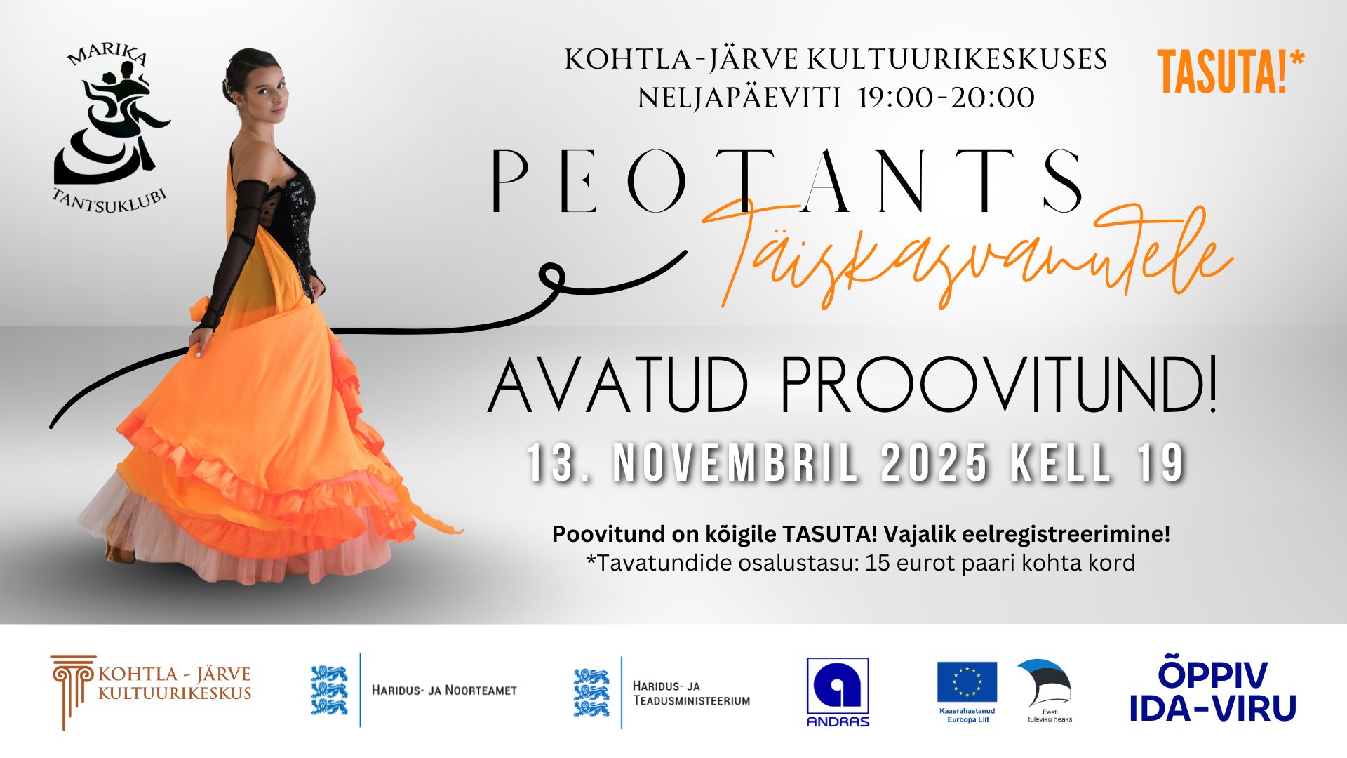Proovitund toimub Haridus- ja Noorteameti, Kohtla-Järve Kultuurikeskuse ja Tantsuklubi Marika koostöös ning osalejatele jagatakse infot Ida-Virumaa inimestele suunatud täiend- ja tasemeõppe võimaluste kohta.